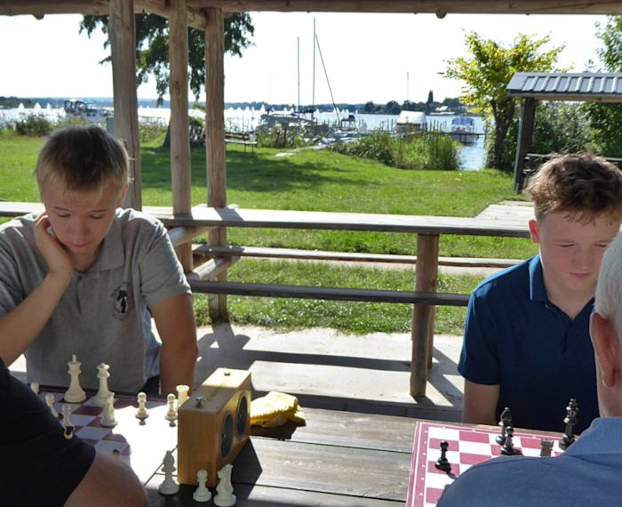 Mangelnde Spielpraxis verhinderte möglicherweise ein besseres Abschneiden der beiden anderen Teilnehmer aus Wildpark-West. Matthias Zimmer (60, ohne Verein) gelang im direkten Duell gegen Dominik Bastubbe (13, ohne Verein, Foto rechts) ein Sieg, der ihm Platz vier einbrachte. Bastubbe scheiterte in seinen Partien durch Flüchtigkeitsfehler erst bei knapper werdender Bedenkzeit. Trotz seiner Jugend war dessen gute Spielanlage jedoch unübersehbar.